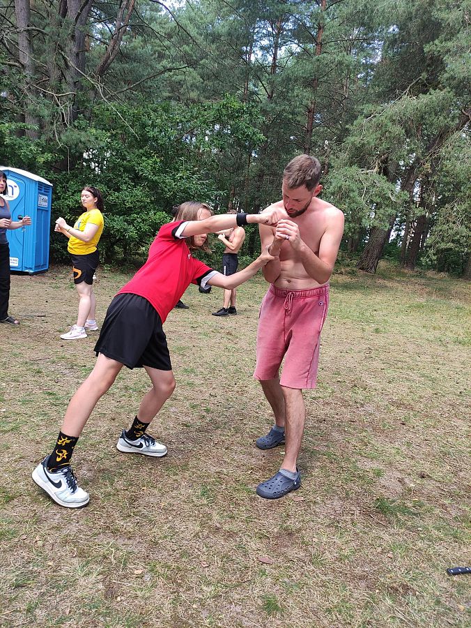 Za raz po krótkiej przerwie po powrocie z nad morza wyruszyliśmy na kolejny obóz. Tym razem na Obóz Samoobrony Krav Maga dla młodzieży i dorosłych, który zorganizowaliśmy w malowniczym Bornym Sulinowie. Wśród lasów i jezior stworzyliśmy przestrzeń, w której uczestnicy mogli nie tylko trenować, ale także rozwijać swoje umiejętności samoobrony, budować pewność siebie i spędzać czas w świetnym towarzystwie.